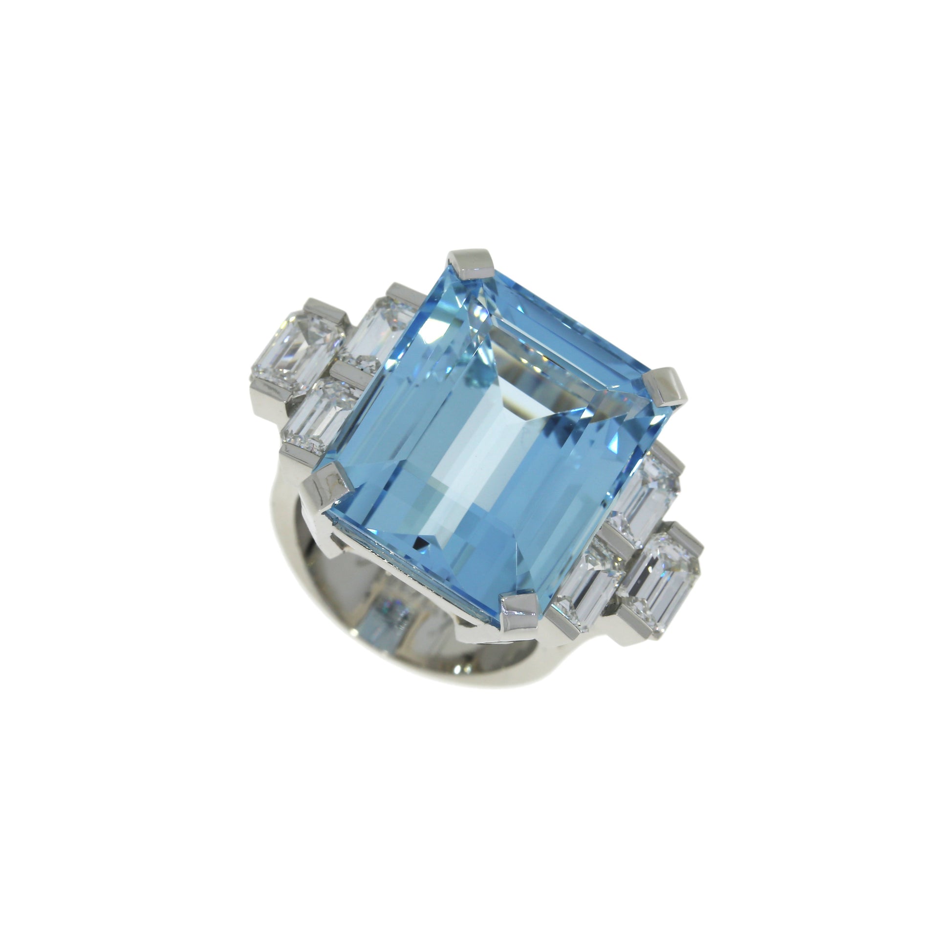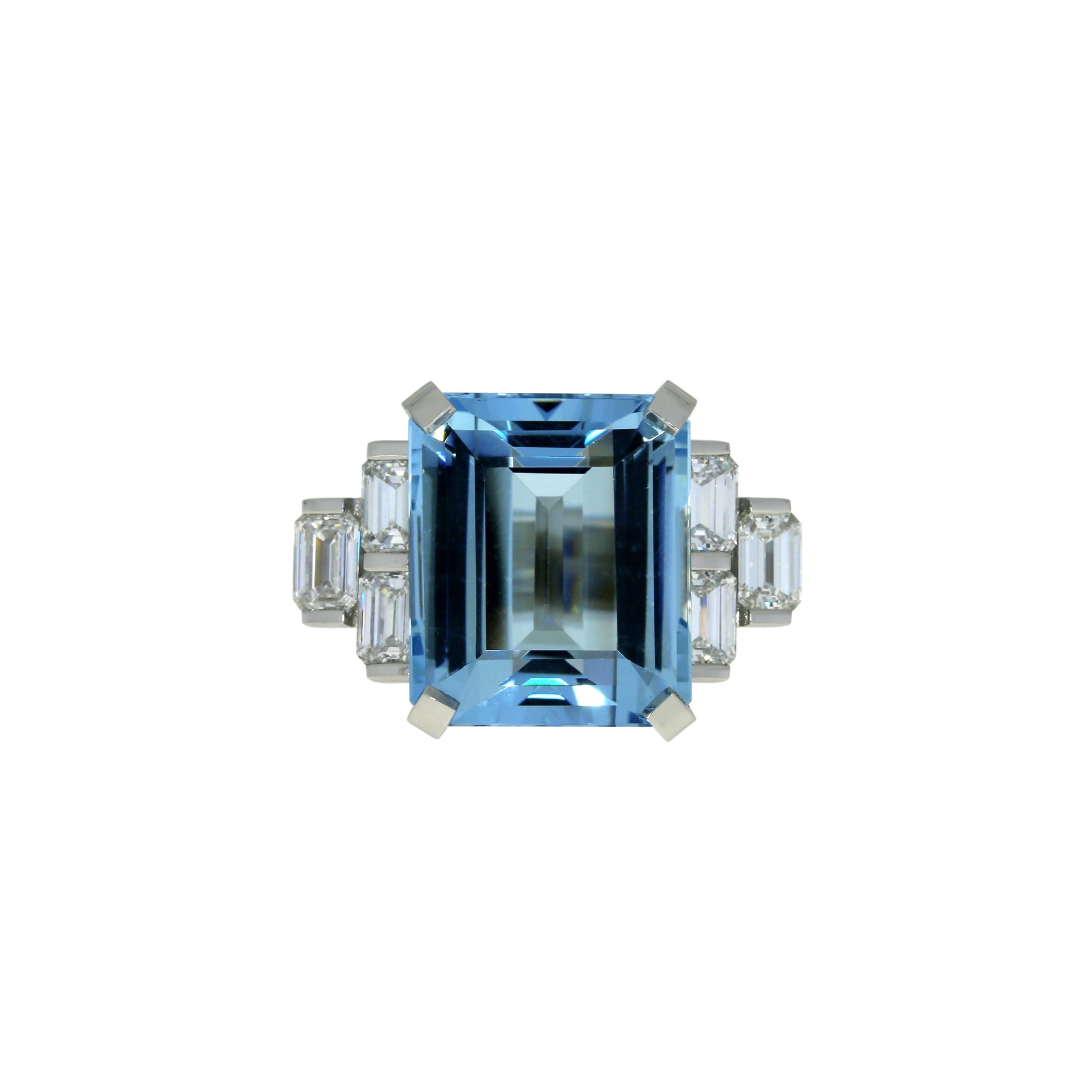 Emerald Cut Aquamarine Emerald Cut Diamond Platinum Ring