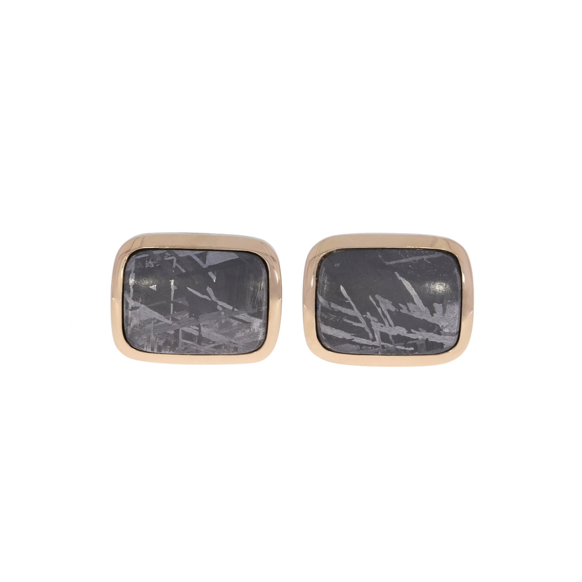 From the heavens to your French cuffs, these meteorite cufflinks are for the person who loves unique and rare things! Each meteorite is set in 14kt rose gold to highlight and contrast the natural nickel and iron features of the meteorite, and the backings are in sterling silver. Each pair is one-of-a-kind, perfect for any professional or formal occasion.