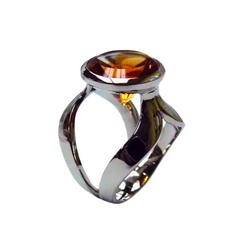 The citrine swirl cut ring was a fun design challenge given to us by a client who liked the idea of having a milk tab as a ring. We chose a fun custom cut stone and set it in this cool ring all hand fabricated in 18kt white gold.