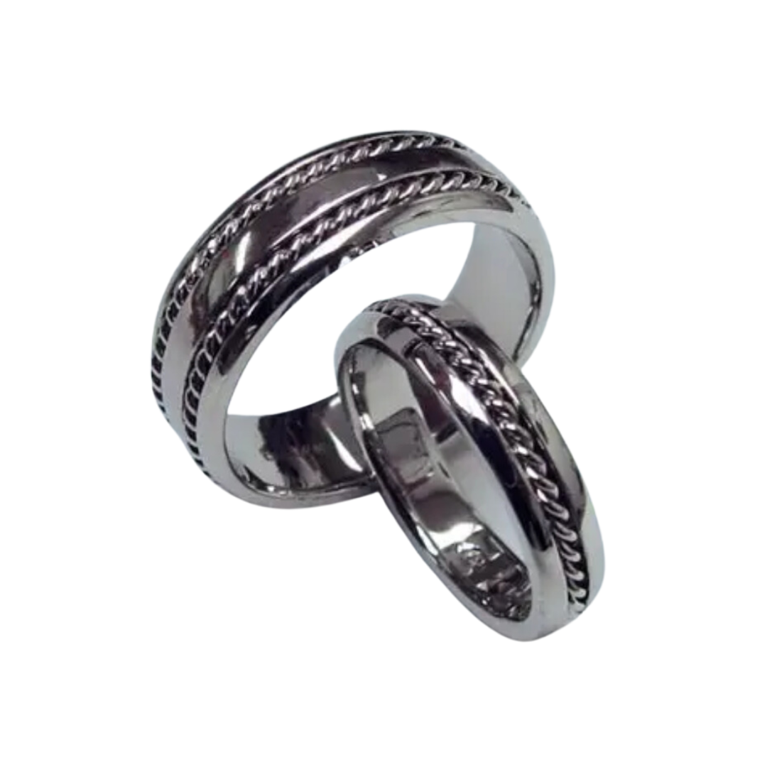 These elegant rope bands are handmade in 14kt white gold. Not exactly the same, but matching nonetheless, these unique rings are perfect for wedding bands. Show your commitment with a set of matching bands that symbolize your everlasting love and unity.