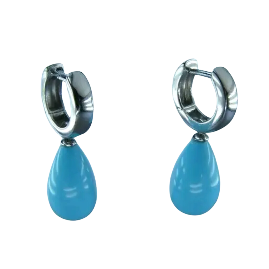 Handmade in 18kt white gold, add a touch of elegance and sophistication to your outfit with these beautiful turquoise earrings. Elevate any look with the unique and timeless appeal of turquoise.